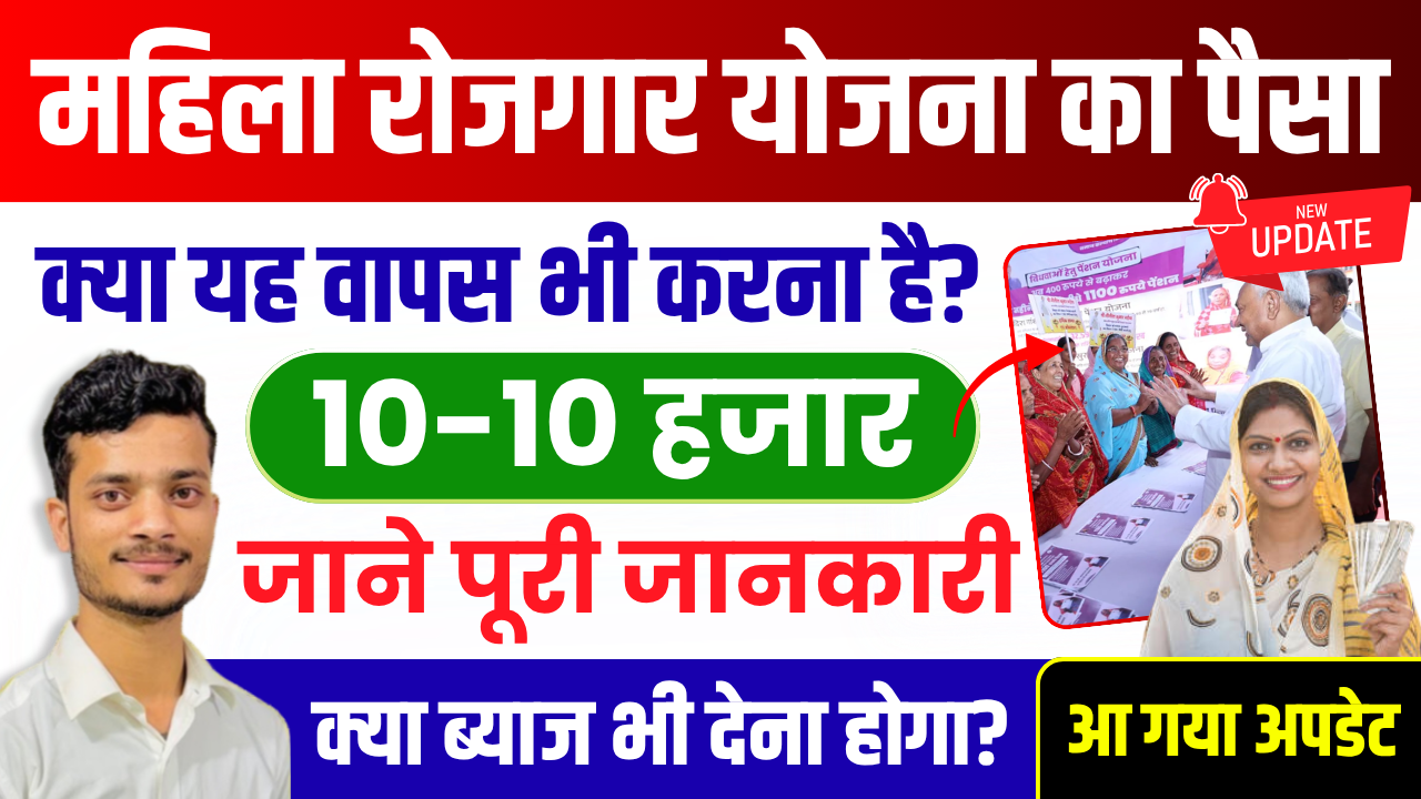 Since this time of Bihar Government “Mukhyamantri Mahila Rojgar Yojana” An amount of ₹ 10,000/- has been sent to the bank accounts of the beneficiaries under this scheme, since then this question is arising in everyone’s mind whether Mahila Rojgar Yojana money will have to be returned, should the Mahila Rojgar Yojana money be returned or not, will the Mahila Rojgar Yojana money also have to be returned, will the government return the Mahila Rojgar Yojana money? Many types of questions are being raised.