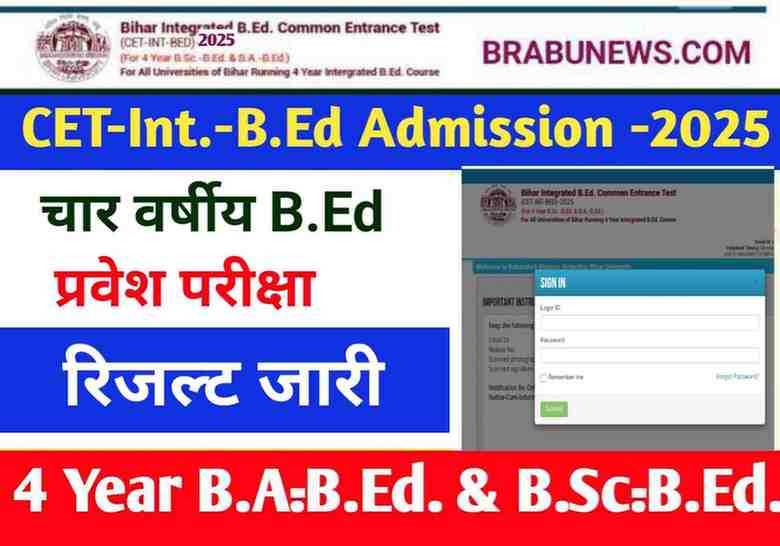Bihar Integrated B.Ed. Common Entrance Test Result 4 (CETINT-BED)- 2025: बाबासाहेब भीमराव अंबेडकर बिहार विश्वविद्यालय (BRABU) ने चार वर्षीय बी.एड. कोर्स ( 4 Year B.Sc. B.Ed. & B.A. B.Ed.) सत्र 2025-2029 में प्रवेश परीक्षा की रिजल्ट घोषित कर दी है।